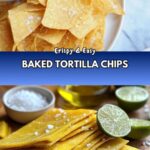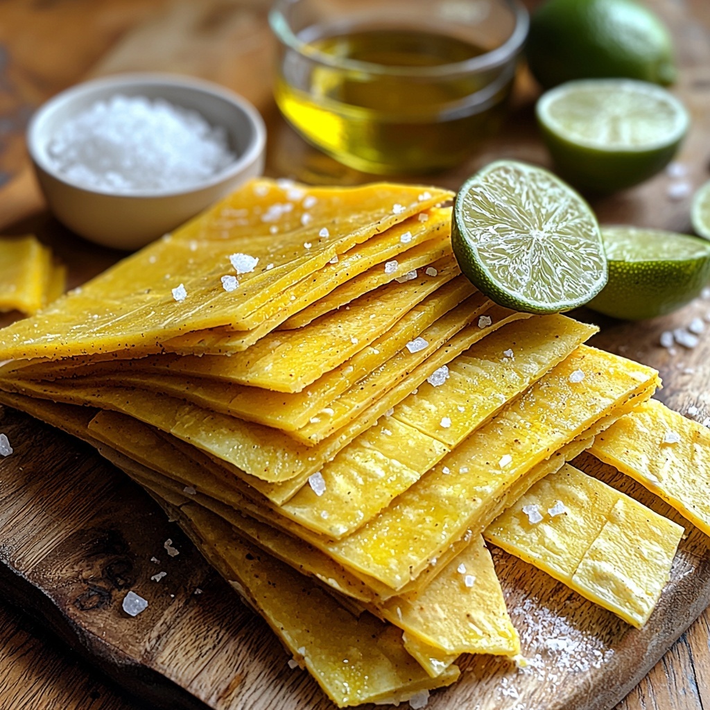Crispy, homemade baked tortilla chips made from fresh corn tortillas, lightly brushed with olive oil and seasoned with salt and lime juice for a zesty twist. Perfect for dipping or snacking, these chips offer a healthier alternative to fried versions with a delightful crunch.