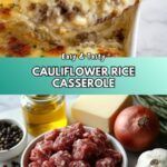 This Cauliflower Rice Casserole is a comforting, low-carb dish combining sautéed ground beef, onions, and garlic with creamy cauliflower rice and rich cheeses. Baked until bubbly and golden, this casserole makes a hearty, flavorful meal perfect for a family dinner or meal prep.
