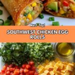 These Crispy Southwest Chicken Egg Rolls combine tender seasoned chicken, sautéed bell peppers, green onions, and melted cheese wrapped in crispy egg roll wrappers. Perfectly golden and bursting with bold southwestern flavors, they make an irresistible appetizer or snack that will delight your taste buds.