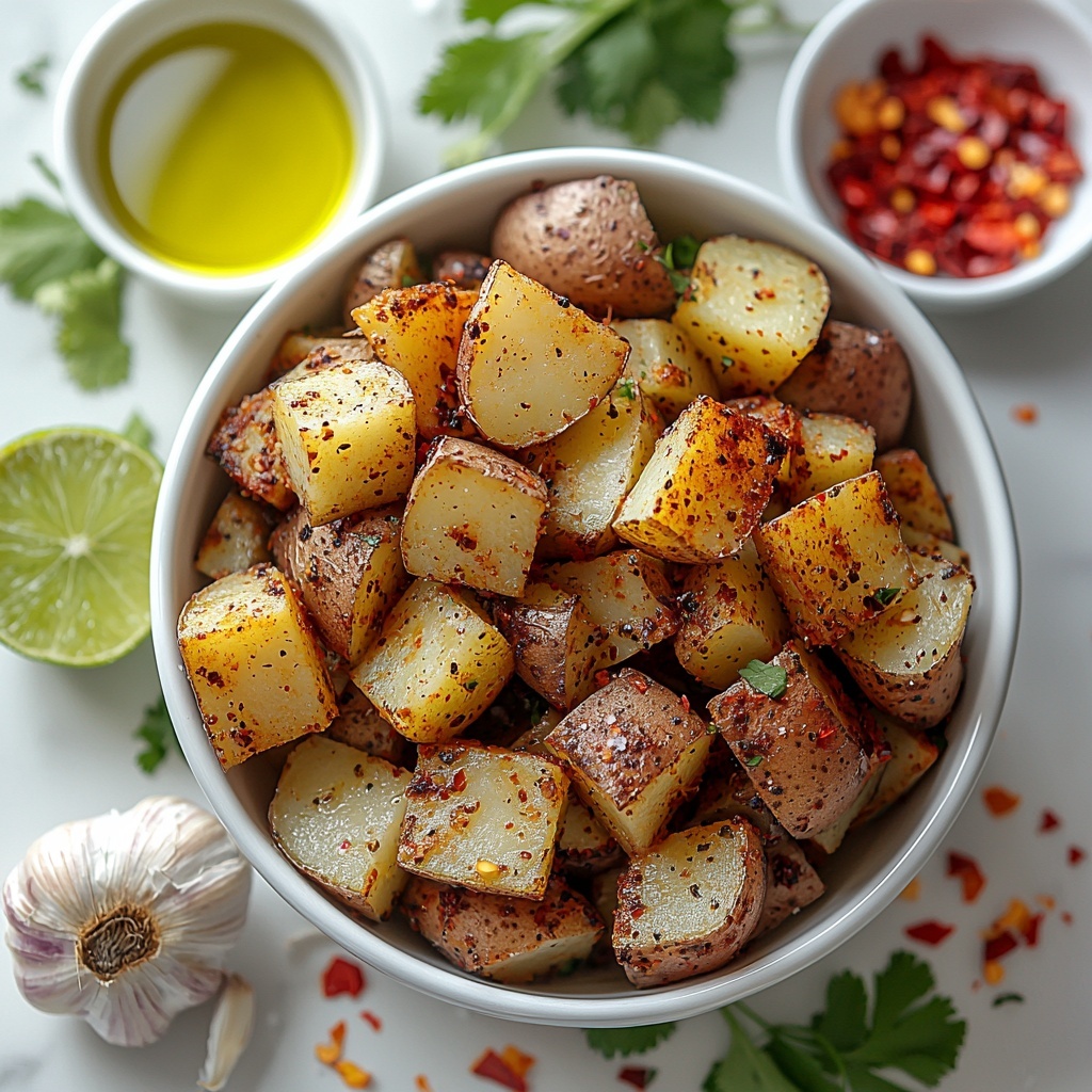 Once golden and crispy, toss your potatoes with fresh cilantro and a squeeze of lime juice. This final touch brings a bright, fresh finish that cuts through the richness and enhances that fiery profile.