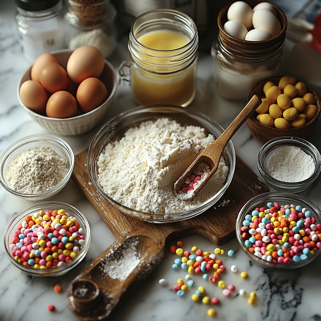 • Fruity Pebbles cereal, 3 cups (2 for dough, 1 for topping): Imparts vibrant color, delightful crunch, and nostalgic playfulness.