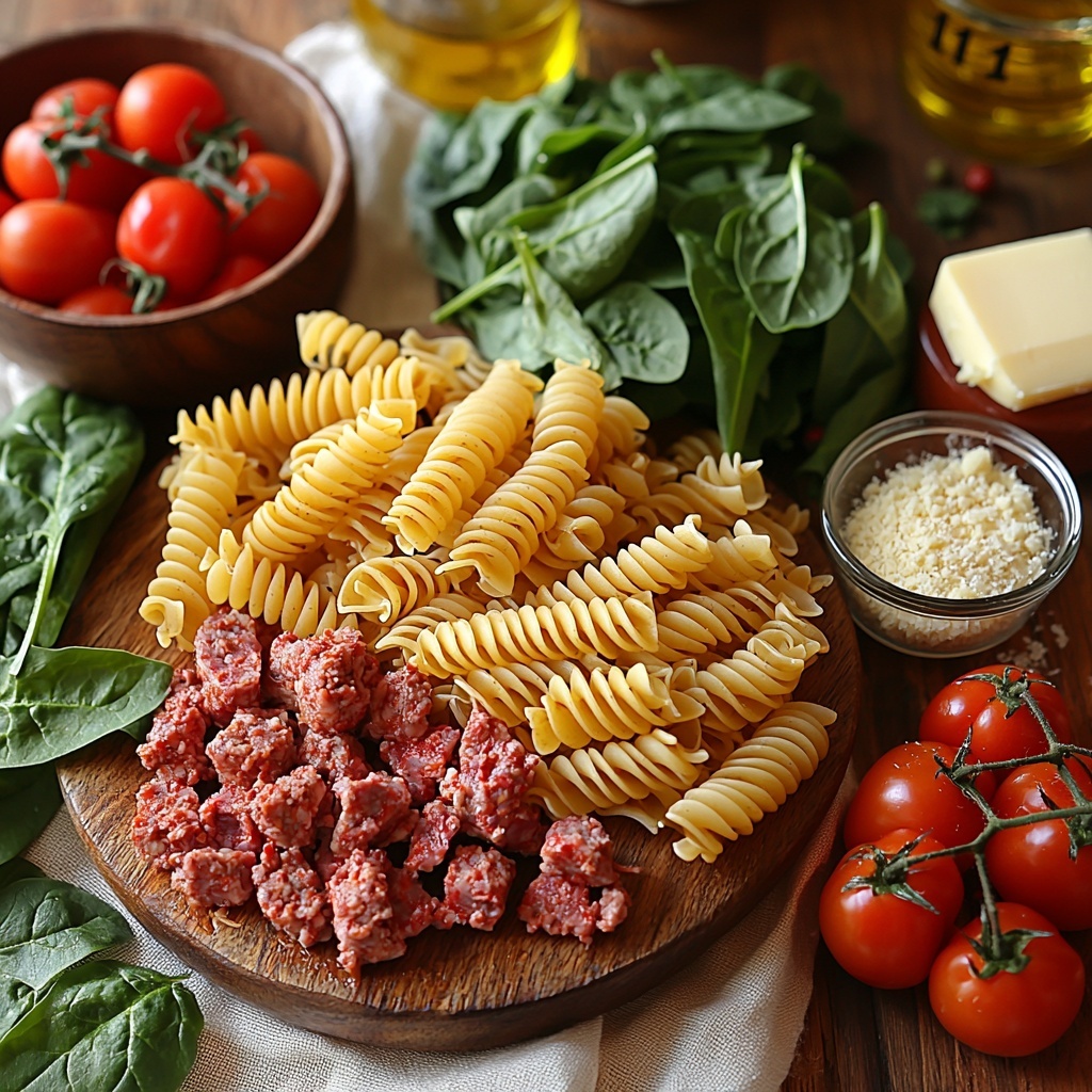Gathering simple, high-quality ingredients is the first step towards making this hearty, soul-warming dish. Every component plays a crucial role: from the robust flavors of the Italian sausage and ground beef, to the creamy butter and fresh garlic that build your sauce, and the spinach that adds a burst of color and nutrition.