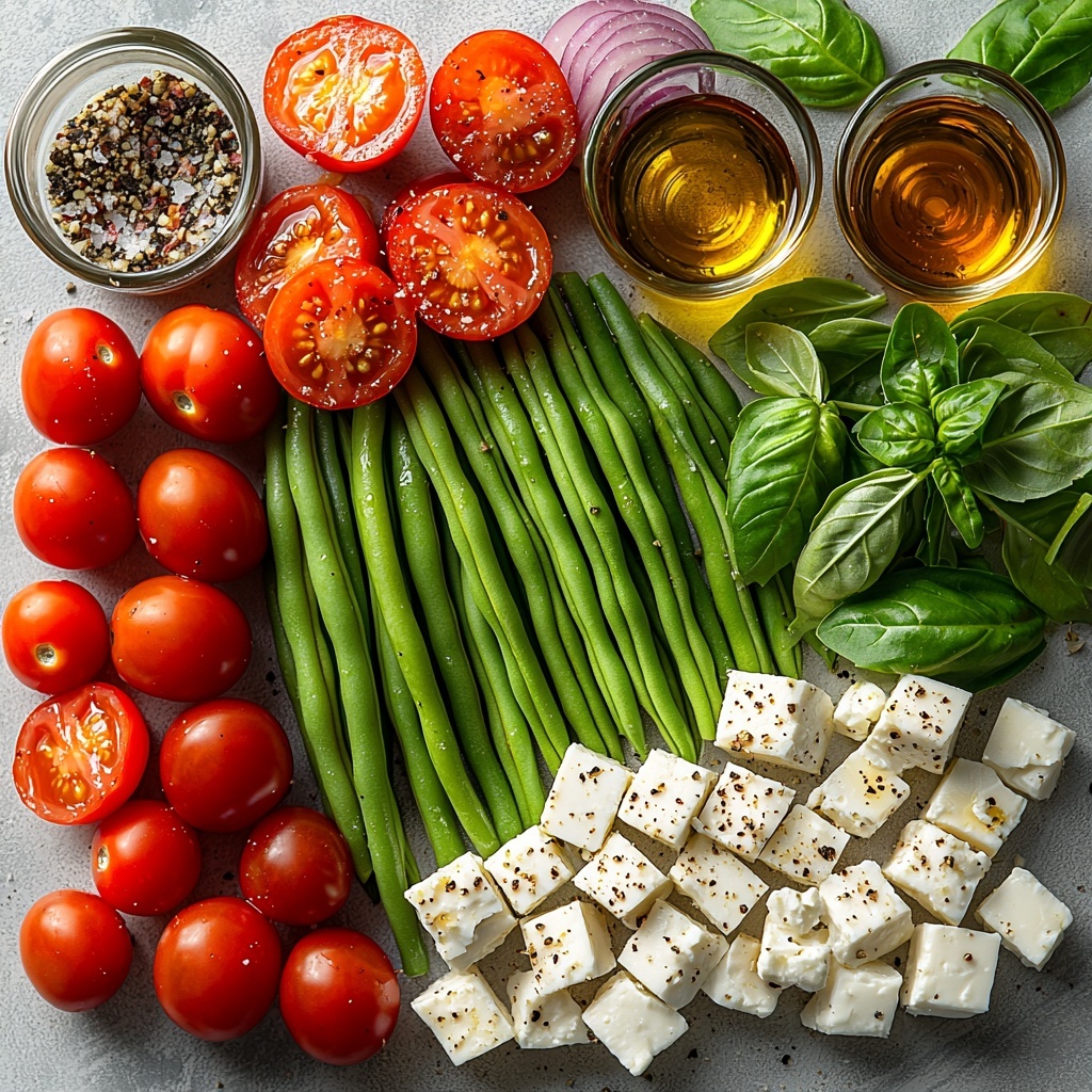 Getting started with the Green Bean Salad with Tomatoes, Feta, and Toasted Almonds Recipe is a breeze because the ingredients are refreshingly simple but thoughtfully chosen to create a harmonious mix of flavors and textures. Each component plays a vital role, from the snap of the green beans to the creamy pop of feta and the delightful crunch of toasted almonds.