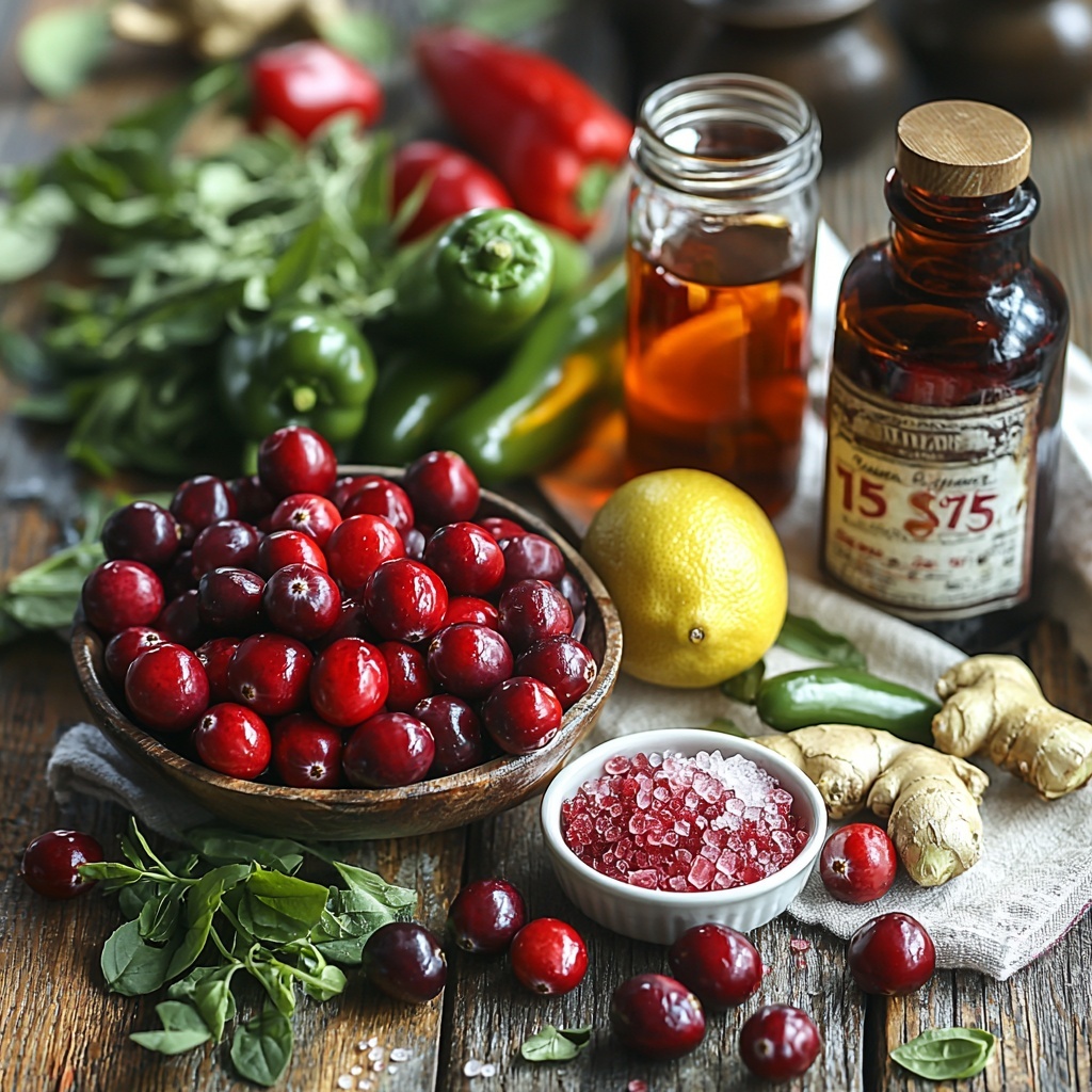 The best thing about this Hot Pepper Cranberry Jam Recipe is that it uses straightforward ingredients you can find easily, yet each plays a crucial role in building its unique flavor profile. The tartness of cranberries, the sweetness of red bell pepper, and the spicy kick of jalapeños come together perfectly, with other staples adding depth and balance.