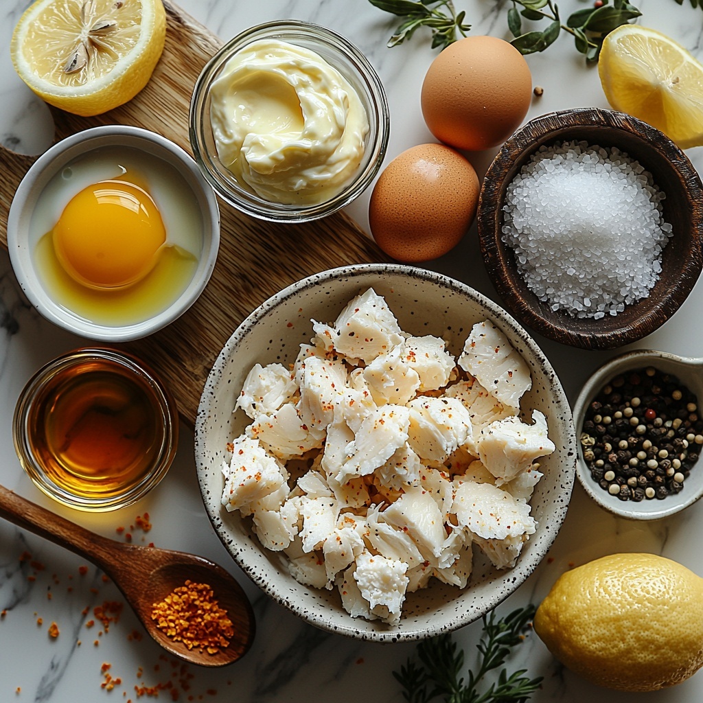 - Prepare the Mixture: In a small bowl, combine the olive oil mayonnaise, lightly beaten egg, Dijon mustard, Worcestershire sauce, salt, and pepper. Stir well to blend all the ingredients smoothly. Gently fold in the jumbo lump crab meat and panko crumbs, being careful not to break up the crab too much. Cover and refrigerate the mixture for 30 to 60 minutes to allow flavors to meld and mixture to firm up, which helps in shaping the cakes. You can refrigerate it up to 24 hours if needed.