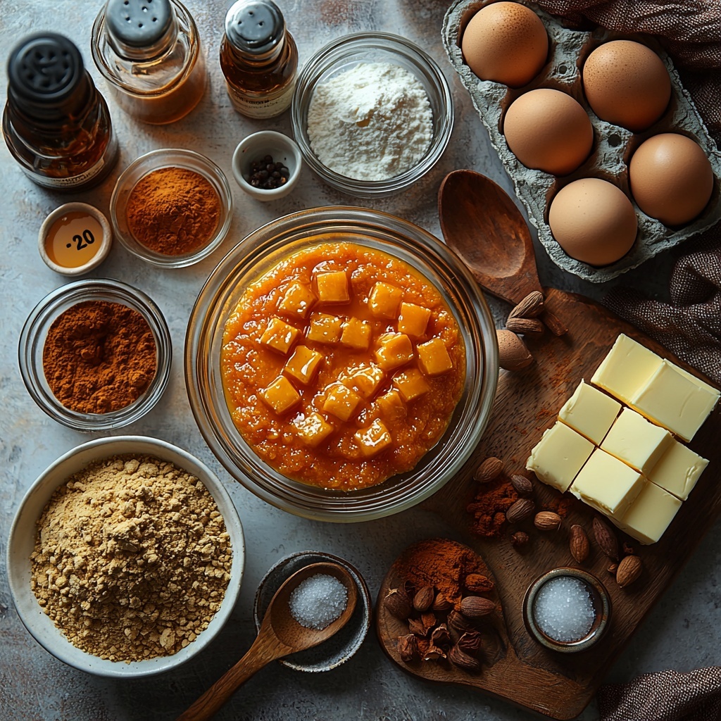 This recipe calls for straightforward, pantry-friendly ingredients that each play a crucial role in building the cake’s irresistible flavor and texture. From the natural sweetness and moisture of pumpkin puree to the comforting spices and essential leavening agents, these elements combine to create a perfect autumn dessert.