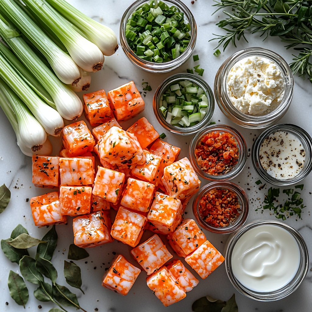 • 3 celery stalks (minced): Contributes a fresh, crisp undertone enhancing texture and aroma.