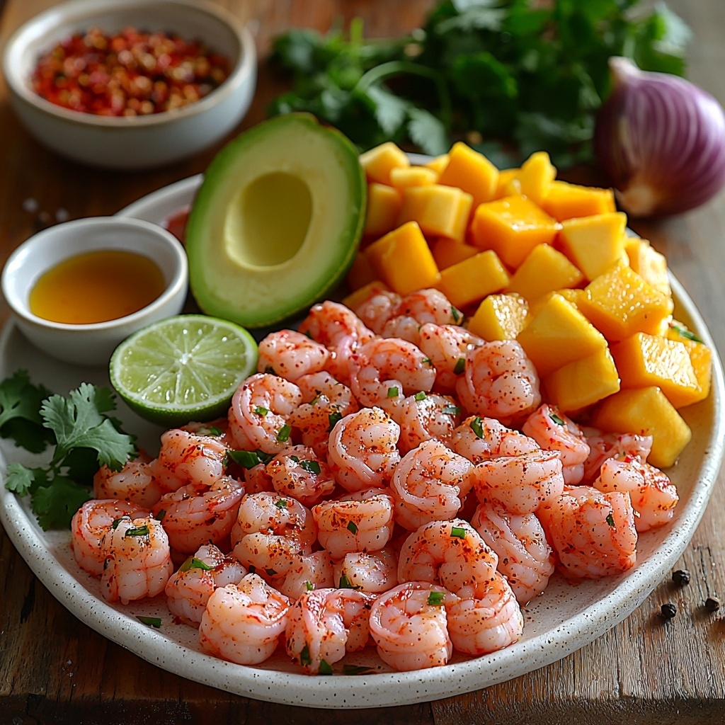 - 1 mango, diced: Fresh and juicy, mango provides a sweet contrast to the spicy and smoky shrimp.