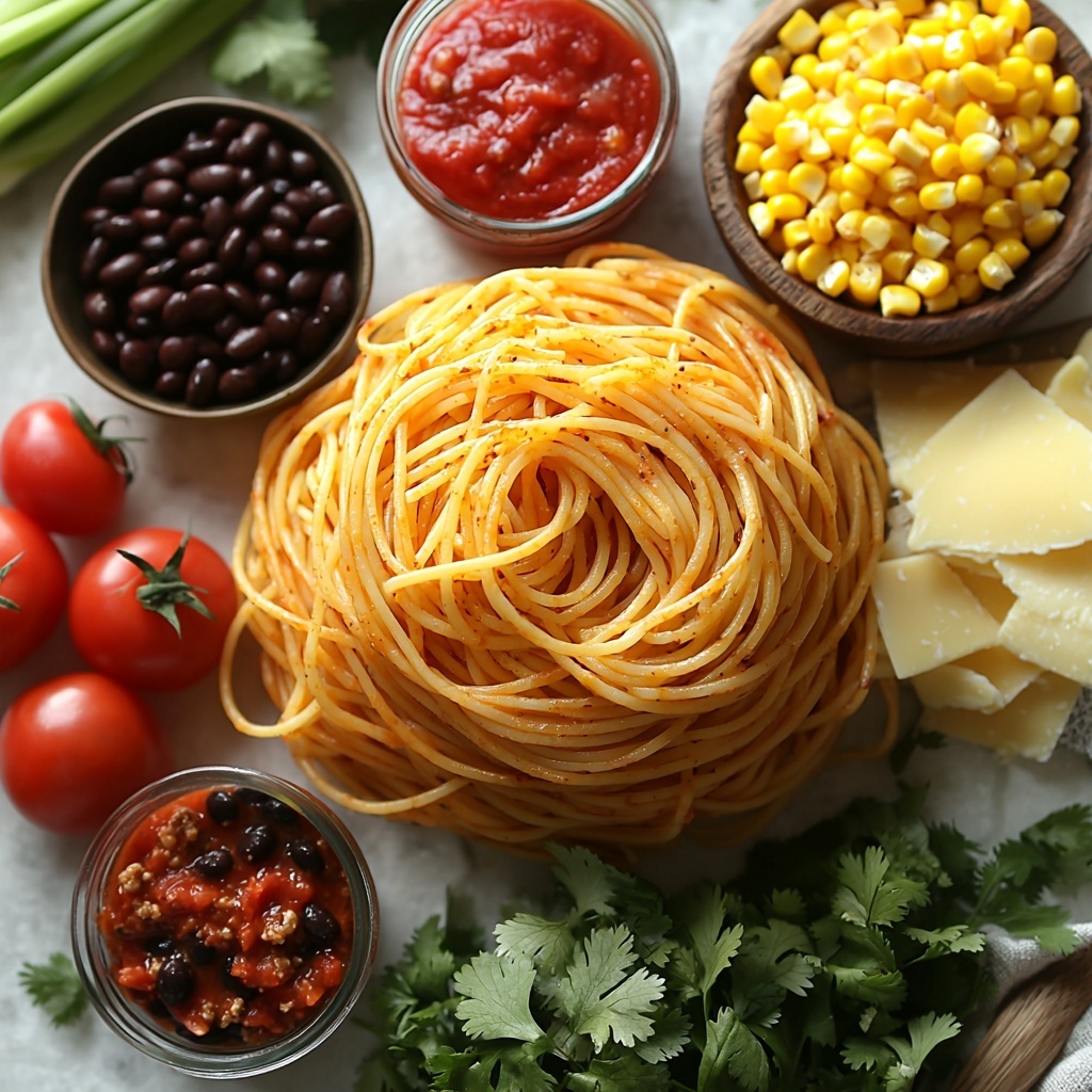 These ingredients are straightforward but absolutely essential for nailing that perfect balance of texture, flavor, and color in the Taco Spaghetti Recipe. Every component, from the ground beef to the beans and cheeses, works in harmony to build a dish that’s hearty, satisfying, and full of zest.