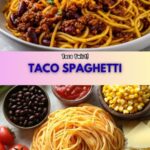 This Taco Spaghetti recipe blends classic Italian pasta with bold Tex-Mex flavors for a delicious, easy weeknight dinner. Ground beef simmers in a seasoned tomato sauce with corn and black beans, tossed with spaghetti and topped with melted cheddar and Monterey Jack cheese. Garnished with green onions and fresh cilantro, it’s a comforting fusion dish perfect for the whole family.